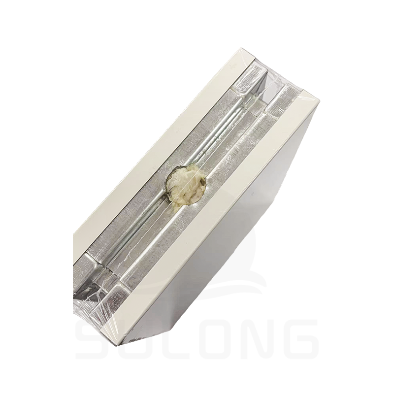 This new generation of building decoration panels uses polyurethane (PU) core material and hot-dip galvanized color-coated sheet as the surface layer (two layers). It is manufactured through a high-speed, continuous, automated molding machine under heat and pressure, followed by trimming, grooving, and cutting. Density: 15~45 (kg/m³), thermal conductivity: 0.024 (W/m.k), water absorption rate: 2.45% (V/V).